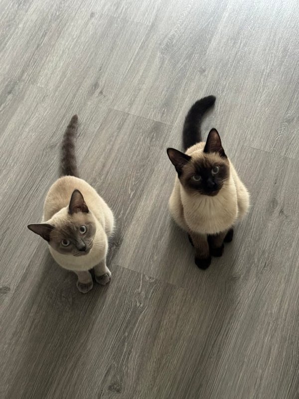 А вот здесь различия может заметить скорее только эксперт. В стандартах обеих пород шерсть описывается так: блестящая, плотно прилегающая к телу, шелковистая на ощупь, без подшерстка. Единственное отличие в этих описаниях: шерсть тайцев описывается как «короткая», а сиамов – «очень короткая».