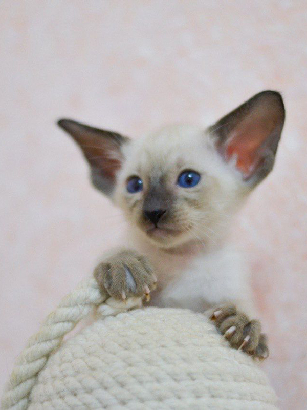 Еще одно очень заметное различие двух пород. У тайцев уши среднего размера, широкие у основания, со слегка закругленными кончиками и широко расставлены.
