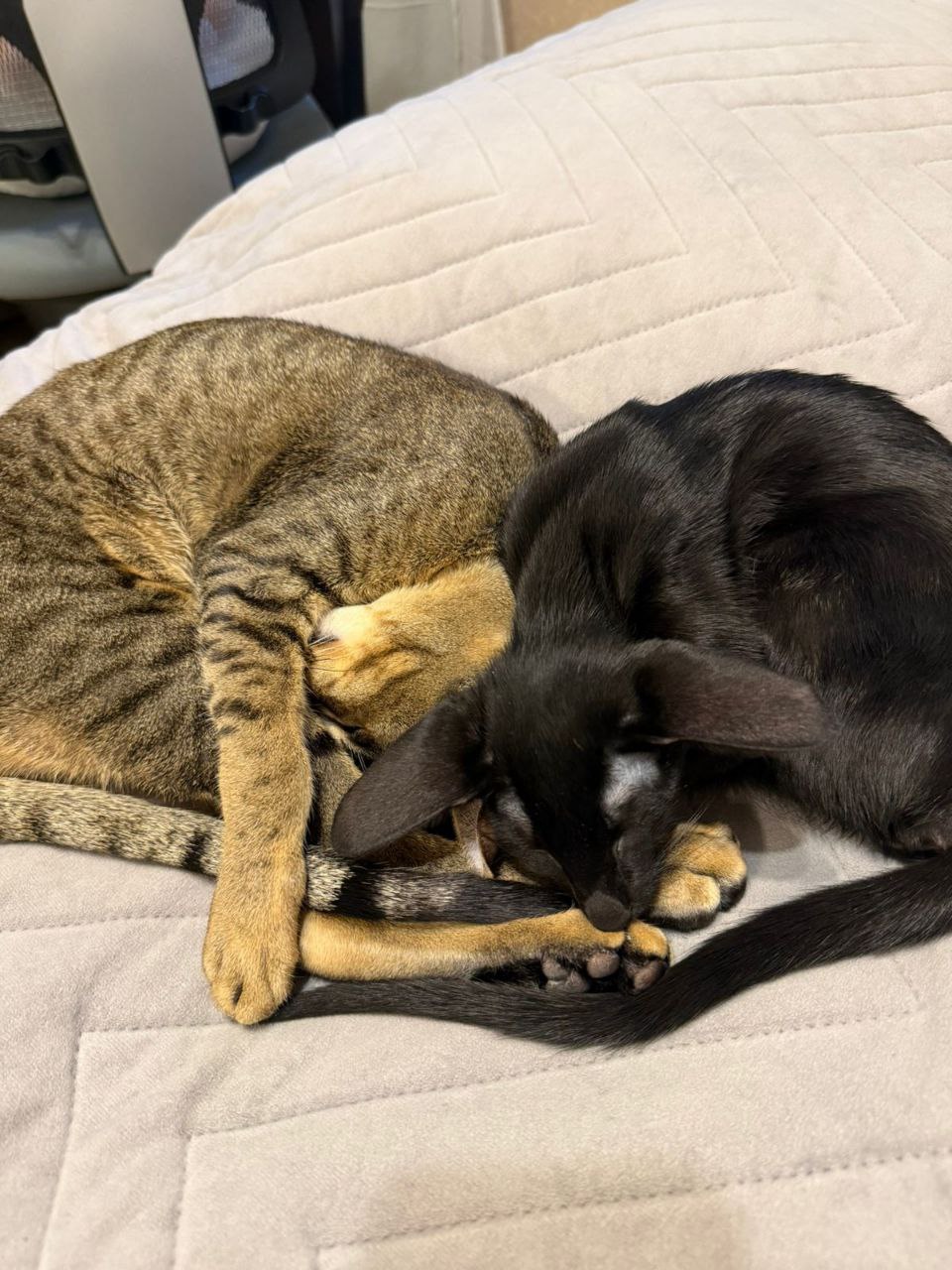 Сам Ичик стал сильно спокойнее, раньше постоянно мяукал и хотел нашего внимания, сейчас или спит, или с Кацу тусуется 😁
