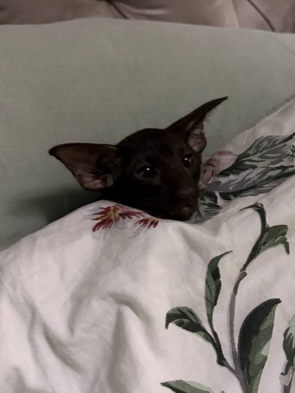 Искали котика ориентальной породы с августа,приехали в питомник знакомиться с котятами. Елена все объяснила и рассказала, решили отложить покупку до нового года. Но всё-таки ждать не стали и с помощью сайта нашли котёнка в дружественном питомнике поближе к нам в Нижнем Новгороде. Елена помогла связаться с заводчиком, оформить необходимые документы и через неделю мы уже ехали с нашим чудом домой. Никас болтун и везде за нами ходит - все как и хотели!😊